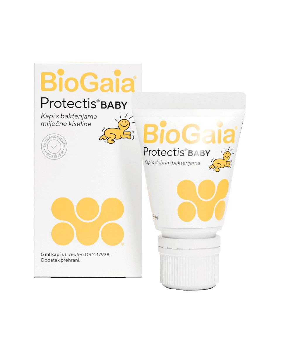 BioGaia Protectis Baby kapi su dodatak prehrani u obliku kapi s L. reuteri Protectis® za djecu od rođenja nadalje. Kapi se mogu davati na žličicu ili dodati u mlijeko, vodu ili neki drugi prikladni napitak ili hranu, što ih čini savršenim za dojenčad i malu djecu, odnosno one koji ne mogu uzimati tablete. Samo pet kapi jednom dnevno osigurava preporučenu dnevnu dozu od 100 milijuna živih bakterija Limosilactobacillus reuteri DSM 17938, nadopunjavajući mikrofloru u probavnom traktu.