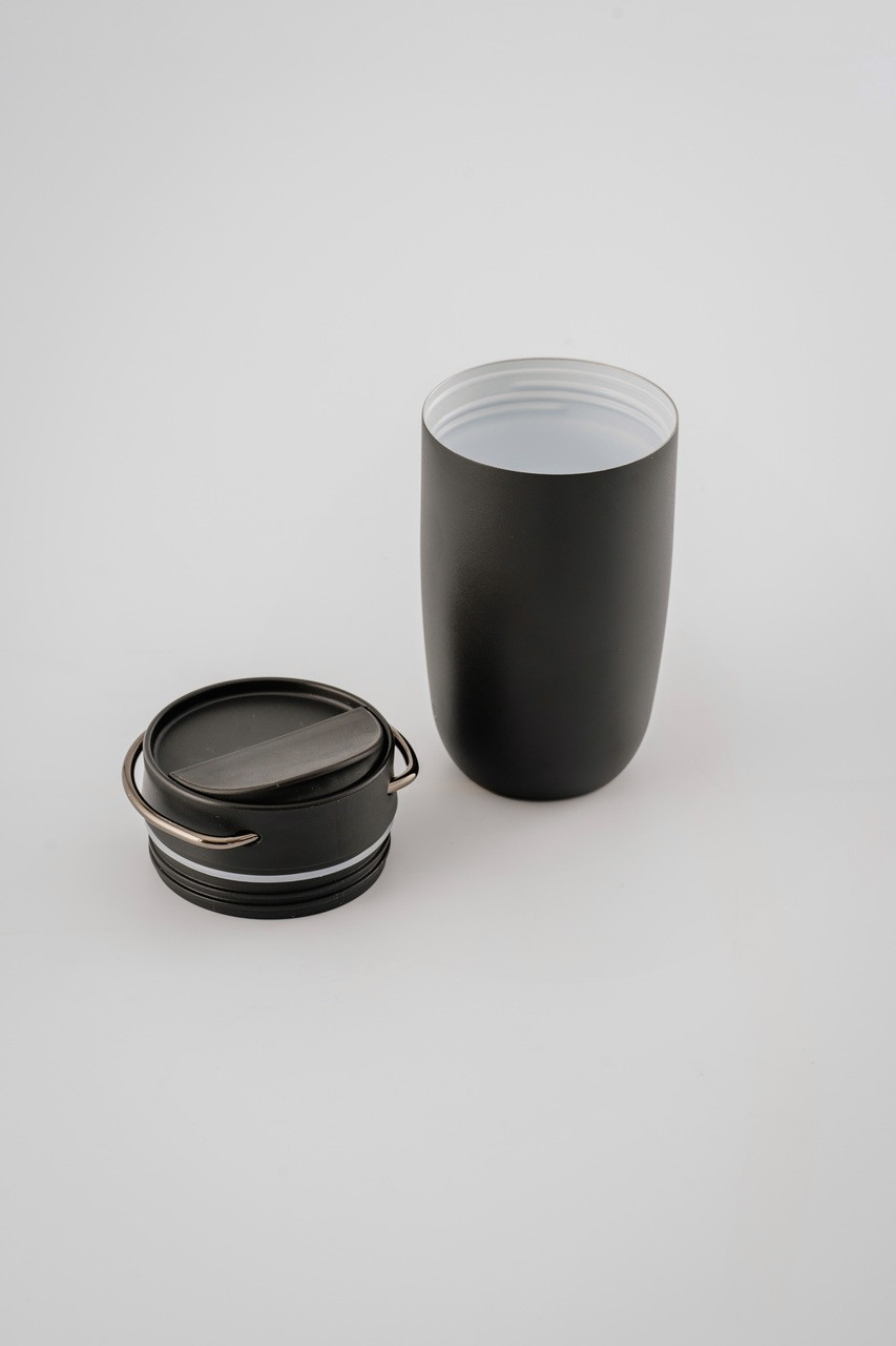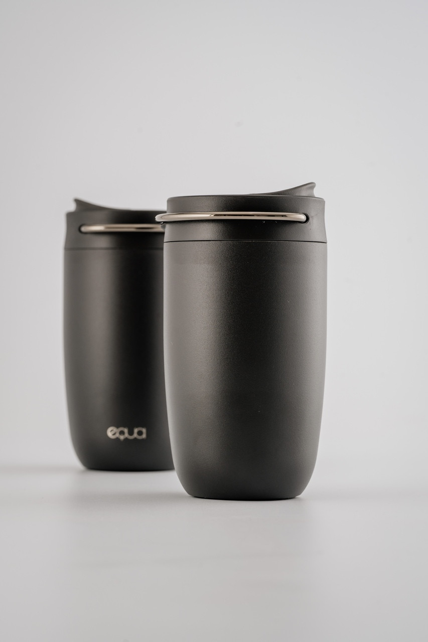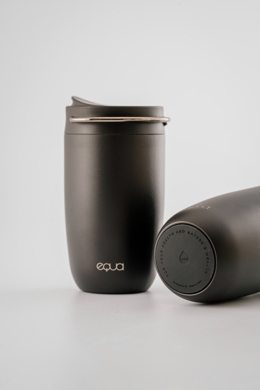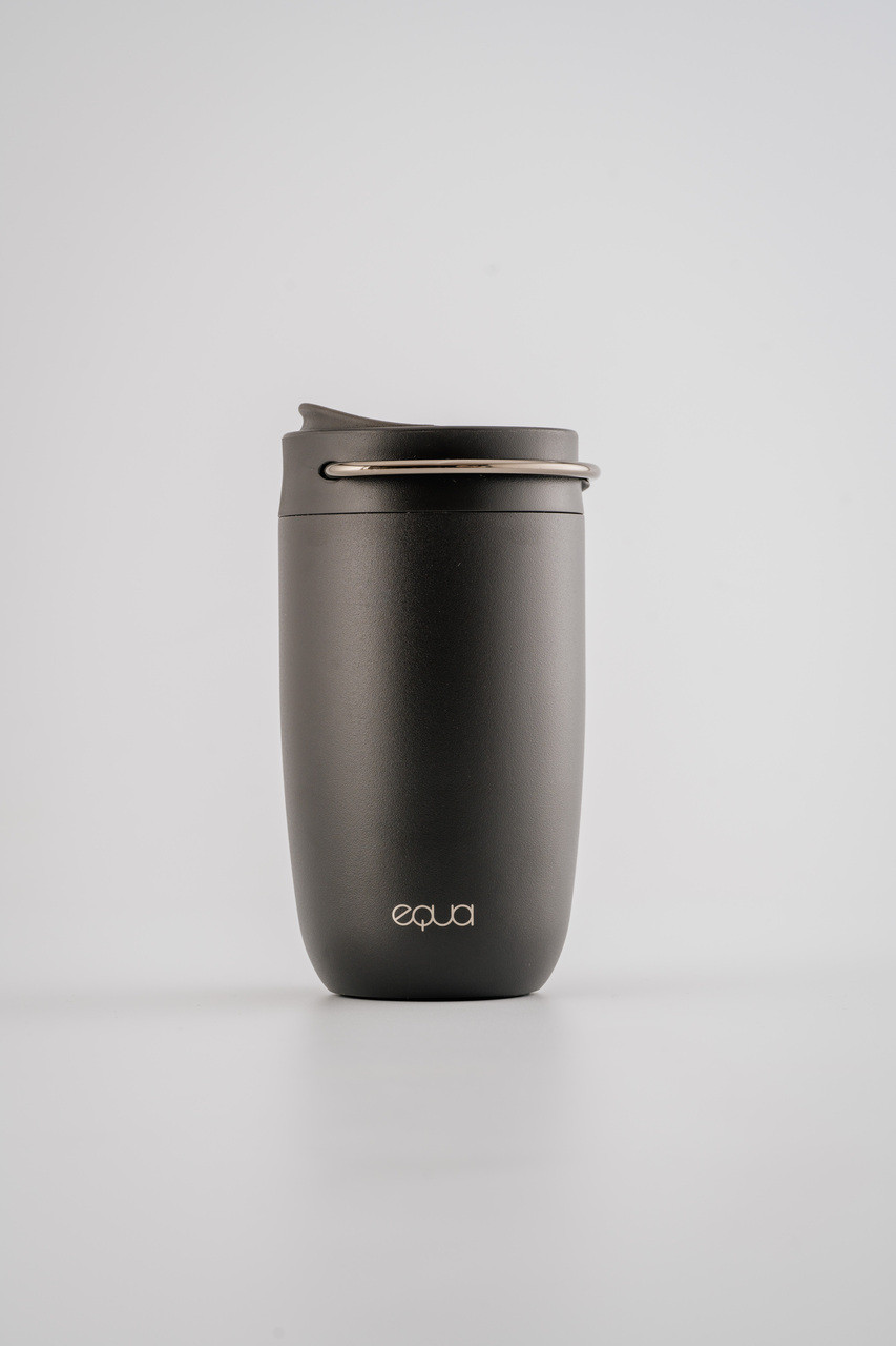 EQUA Cup crna termo šalica od nehrđajućeg čelika savršeno se uklapa u svaku jutarnju rutinu. Termoizolacija održava piće vrućim do 4 sata, a unutarnji keramički premaz poboljšava okus. Ova elegantna šalica s protukliznim silikonskim dnom i praktičnom ručkom idealna je za čaj ili kavu na putu. Šalica je 100% vodonepropusna i ima kapacitet od 300ml.