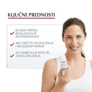 Eucerin Antiperspirant Roll-On Strong pruža pouzdanu zaštitu od znojenja i neugodnih mirisa ispod pazuha tijekom 48 sati.