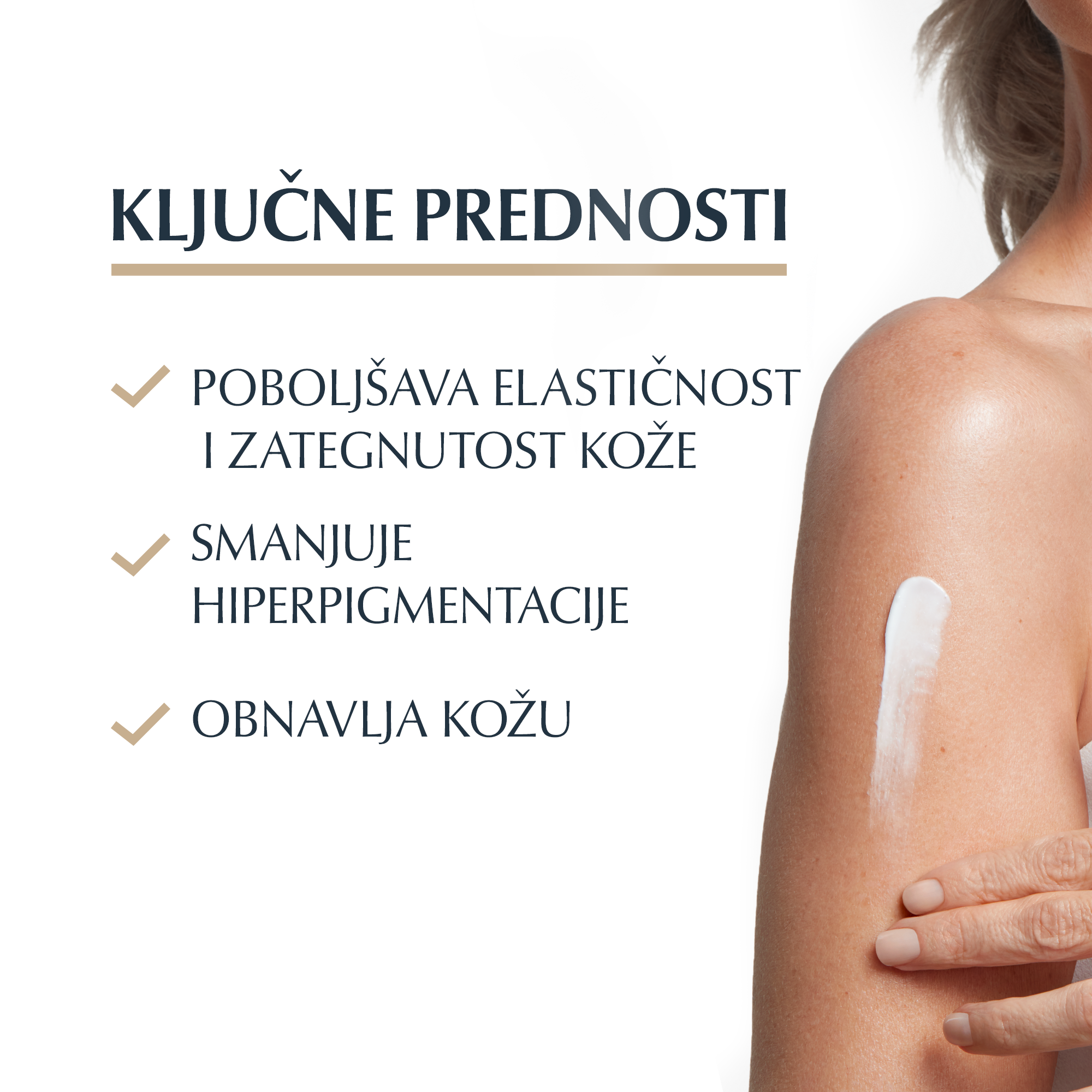 Anti-Age krema za tijelo Prva anti-age krema za tijelo koja pruža vidljivo poboljšanje elastičnosti i značajno smanjivanje pojave hiperpigmentacija na koži.