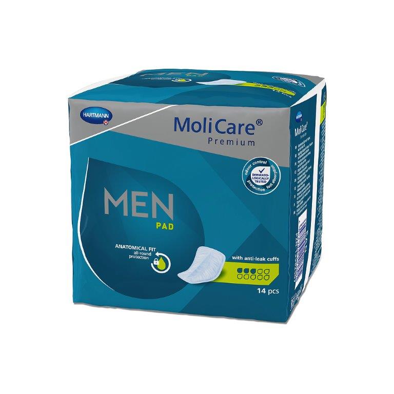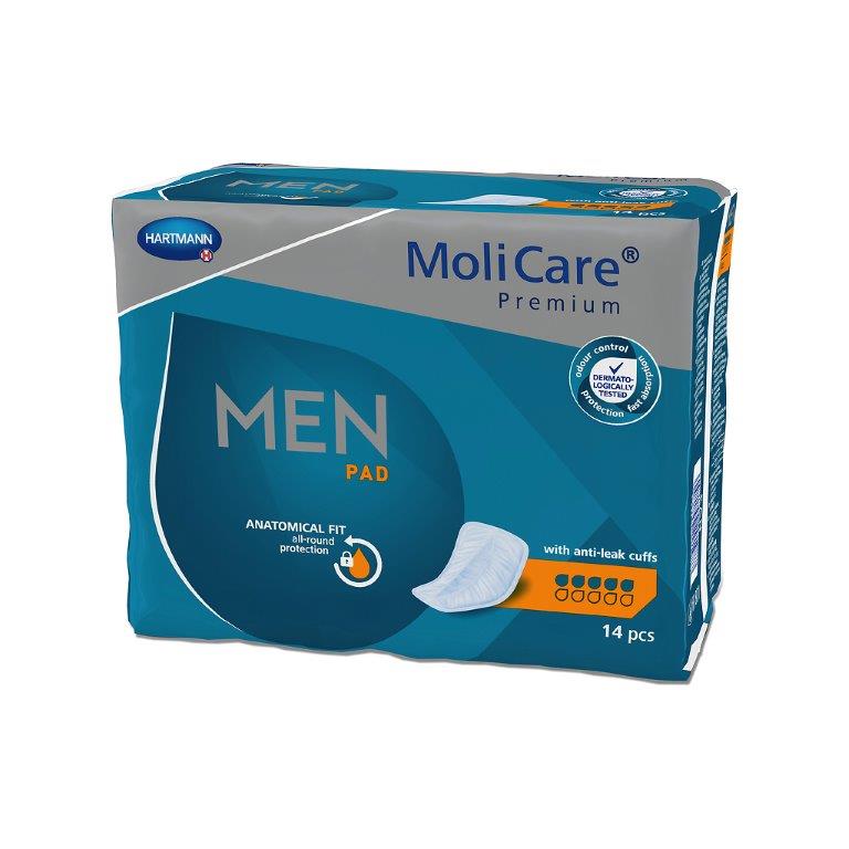 MoliCare® for Men ulošci sadrže antibakterijsku, pH neutralnu Dry Plus jezgru koja brzo i sigurno upija tekućinu te je svojim sustavom kanala ravnomjerno raspoređuje u unutrašnjosti uloška. Uložak sadrži superapsorpcijsku jezgru sa integriranim indikatorom vlažnosti, a cjelokupna je površina uloška prekrivena netkanim površinskim slojem koji štiti kožu i održava je suhom. Prednji i stražnji dijelovi uloška su posebno otporni na istjecanje tekućine. Anatomske osobine uloška pojačavaju elastični nabori u području međunožja što omogućava dodatno zadržavanje tekućine. Dodatnu diskreciju omogućava neutralizator mirisa koji pouzdano veže neugodne mirise. Dermatološki testirani ulošci se jednostavno stavljaju i mijenjaju te se mogu koristiti u u kombinaciji s donjim rubljem zahvaljujući ljepljivoj traci na donjem dijelu uloška. Za potpunu sigurnost mogu se koristiti i u kombinaciji s MoliPants® elastičnim gaćicama za fiksiranje uložaka.