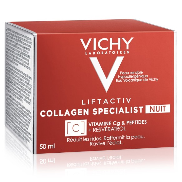 Collagen Specialist noćna njega smanjuje bore, učvršćuje kožu i povećava blistavost. Osmišljena je kako bi zaštitila kožu od vanjskih štetnih utjecaja i tijekom noći oporavila oštećenja koja se akumuliraju tijekom dana. Formula sadržava anti-aging peptide za učvršćivanje kože i vitamin Cg + resveratrol prirodnog podrijetla. Ova se krema preporučuje ženama koje žele njegu protiv znakova starenja i za zdraviji izgled kože.